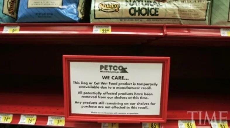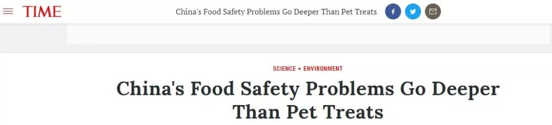 《時代周刊》曾報道因為中國食品安全問題,多家寵物食品商店下架中國寵物產品的新聞。