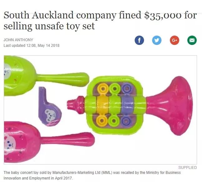 今年五月,紐西蘭媒體報道一家華人公司因為銷售劣質玩具而被紐西蘭商業委員會罰款3.5萬。
