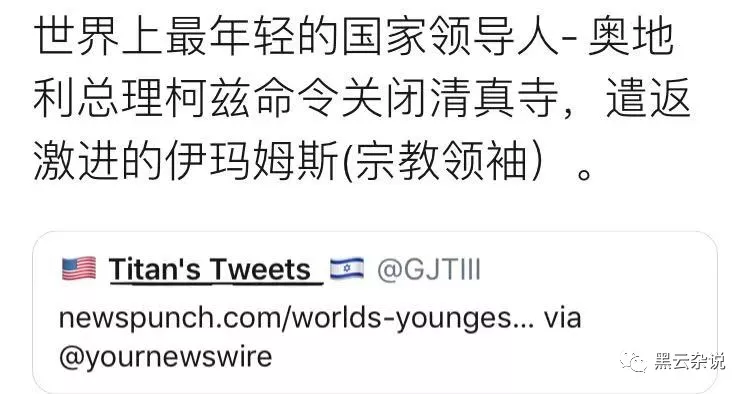 不僅波蘭,奧地利年輕的總理柯茲命令關閉奧地利的清真寺,並且遣返激進的阿訇,所以,土耳其總理埃爾多安不爽了,警告柯茲這是要把兩國關係引向「十字軍與新月的戰爭」。