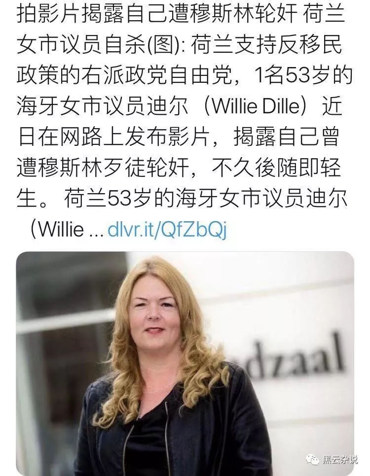 曾經有荷蘭的女議員因為反對移民政策,遭到了穆斯林報復性強姦,並且威脅她不要在國會上亂說話,導致這位女議員自殺。