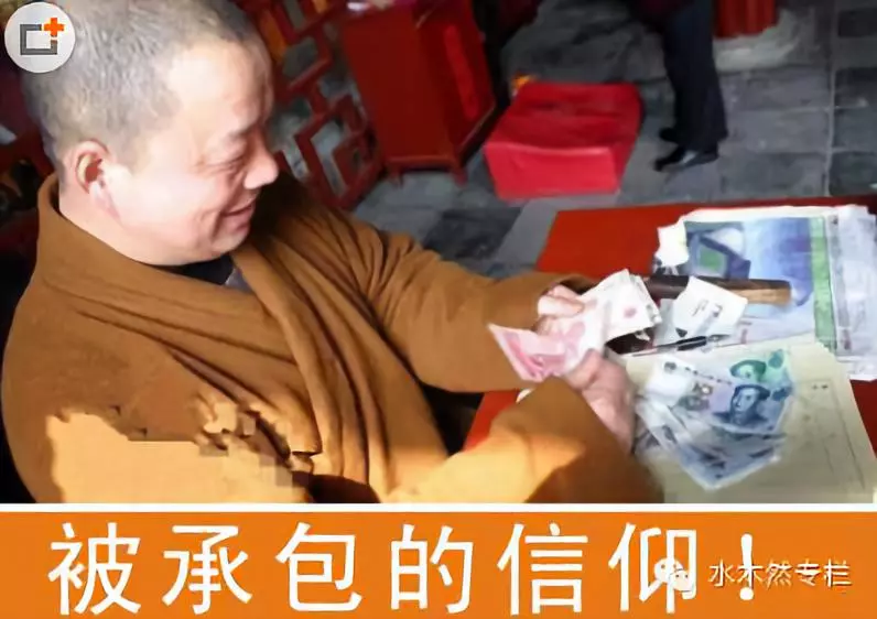 最令人氣憤的是,這些被承包的寺廟裡的和尚和大師竟然多為冒牌,許多人結婚生子,購置房產。他們的收入主要靠業務提成,收入堪比白領。他們不要技術,不需廠房,靠信徒的虔誠賺取香火錢。