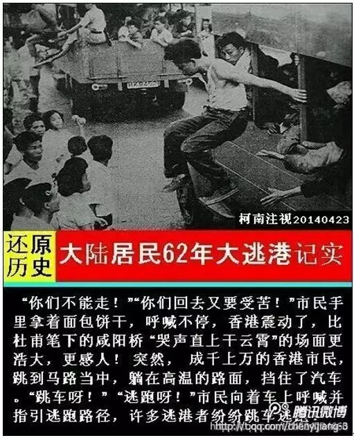 1962年,大批吃不上飯的百姓像潮水一般逃往香港,香港媒體曾以「五月大逃亡」、「水銀瀉地」冠之。