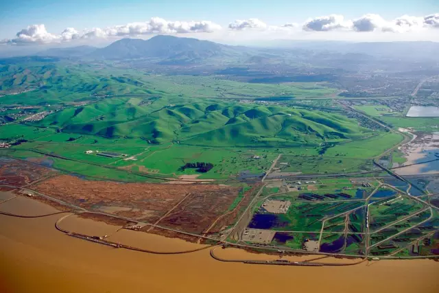 (中央山谷中的河流與農田,遠處為海岸山脈中的代阿布洛嶺Diablo Range,攝影師@)