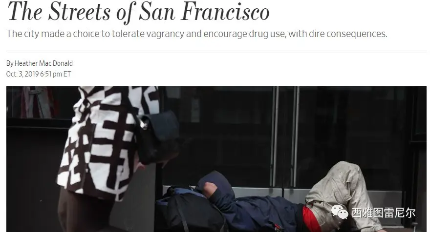 最近《華爾街日報》的一篇文章 《The Streets of San Franciso》 在美國引起了很大的反響。這篇文章其實跟前面的《一部震撼西雅圖的紀錄片:《正在死去的西雅圖:Seattle is dying》》是一體兩面。這篇文章是近年來美國社會對三藩,西雅圖,紐約這些城市日益嚴重的毒品問題以及流浪漢問題的反思與檢討,比如毒品的非罪化是不是走過頭了?是不是蓋房子就能解決流浪漢的問題?同時更深層次地對美國自己價值觀的一個反思。