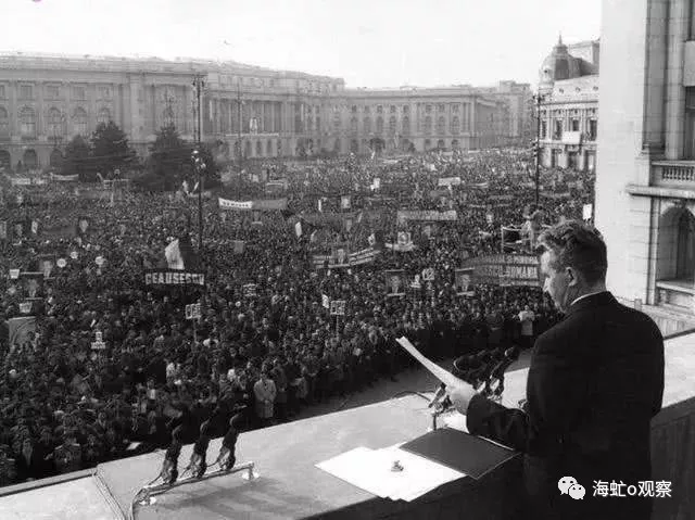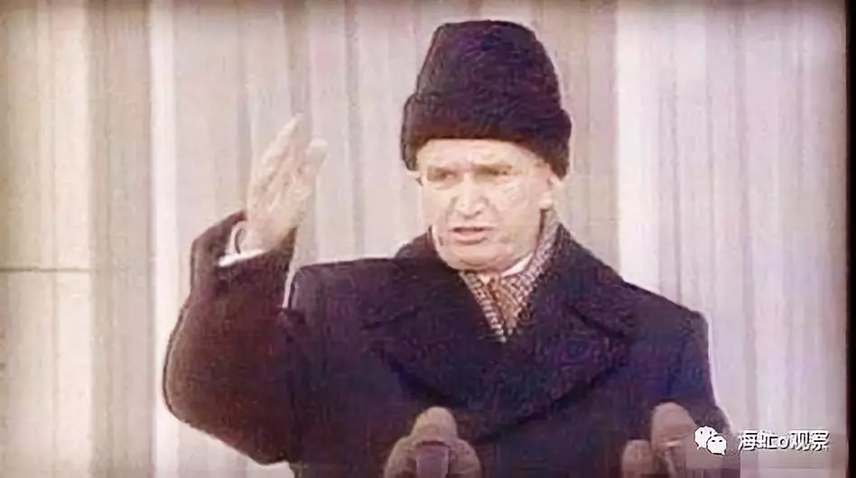 長期陶醉在這樣歡呼里的齊奧塞斯庫,哪裡會想到,距此不過10年,這樣的歡呼便成了羅馬尼亞人民廣播電台里反覆播放的捉拿公告:通緝人民公敵齊奧塞斯庫!通緝人民公敵齊奧塞斯庫!通緝人民公敵齊奧塞斯庫!