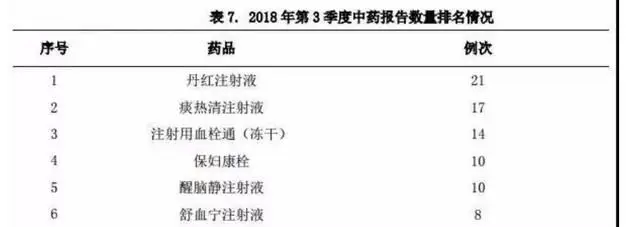 2018年第三季度,北京市葯監局收到的《藥品不良反應/事件報告表》中,中藥不良反應報告,丹紅注射液穩居榜首。