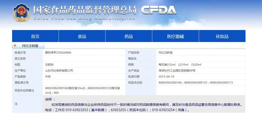 以丹紅注射液為例,在國家食品藥品監督管理局的網站上,可以看到藥品的信息。