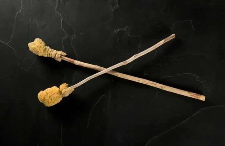 在經過一番考證之後,我發現這個長得像大號棉簽一樣的東西,居然有個專屬拉丁文名詞,叫做Xylospongium或者Tersorium,結構超級簡單,就是一根木棍前面綁上一坨海綿。