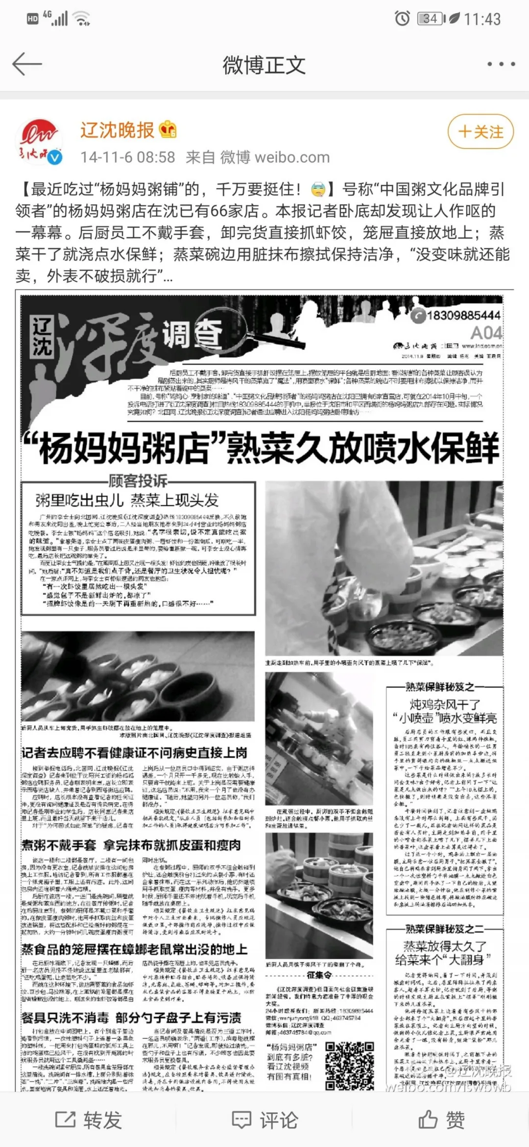 《遼瀋晚報》當年的微博起了一個很有意思的標題:最近吃過「楊媽媽粥鋪」的,千萬要挺住!