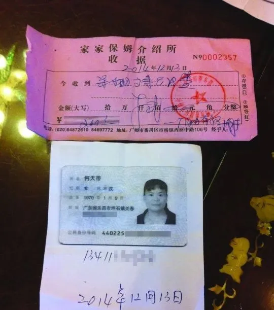 兩個保姆來自廣東同一地區——番禹區。那裡保姆中介所密布。