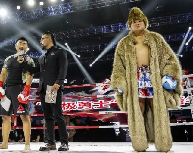 他的出場look是貂皮大衣,賽前宣言是:要用「里合腿」和「鐵牛肘」讓大家知道什麼是中國傳統武術。