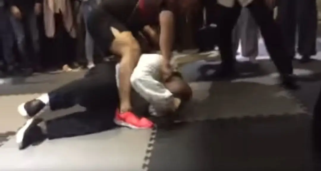 正常來說,此時比賽勝負已分,雙方應當握手言和。惱羞成怒的鄭家寬卻在起身之後偷襲對手。此時,看不下去的當值裁判出手了,他使用一招「裸絞」從背後再次制伏了鄭家寬。