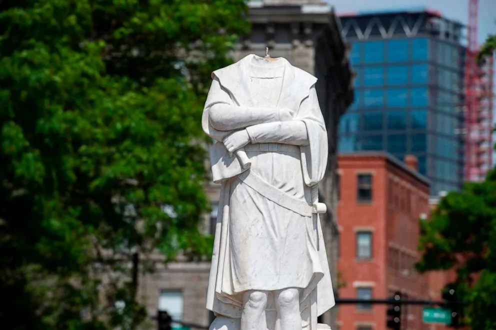 周二晚上,弗吉尼亞州里士滿市的哥倫布雕像被示威者推倒,點燃后扔到了湖裡。同時,波士頓的一座哥倫布雕像被斬首。