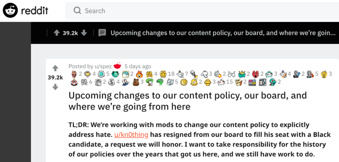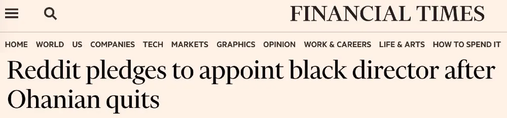 Reddit首席執行官Steve Huffman發表聲明表示,該公司將「兌現」Ohanian先生提出的其繼任者是黑人候選人的要求。