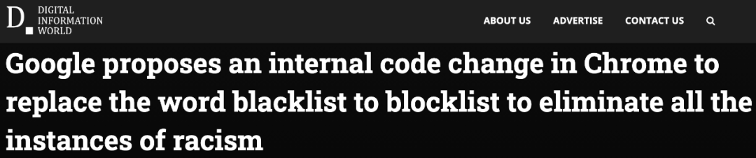 Google的Chrome瀏覽器為了避免觸及「black」一詞的紅線,將用「blocklist」替換「blacklist」。