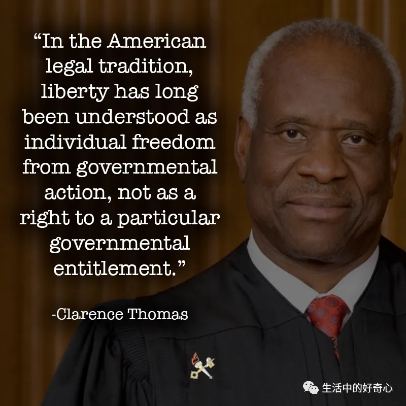 「在美國法律傳統中,自由一向被認為是個人能免受政府的干擾,而不是個人有權享受一種特殊的政府福利。」 托馬斯大法官