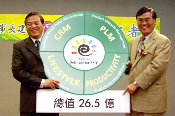 下圖是 2006 年「徐董事長建國先生」(右)再次向母校台灣中興大學捐贈,圖中 Eclaire 是他新開的公司的名字。
