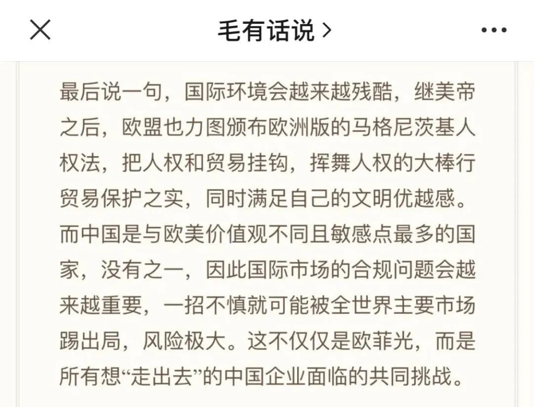 我幾天前剛好表達過類似的擔憂,中國企業「走出去」戰略會遇阻,基本上,出海一個,冒尖一個,出頭一個,就會馬上被掐尖,被收割,被滅掉。冷戰也是戰爭,是慢性戰爭、消耗戰爭、不流血的戰爭,如果還對此心存幻想,就想想TikTok。