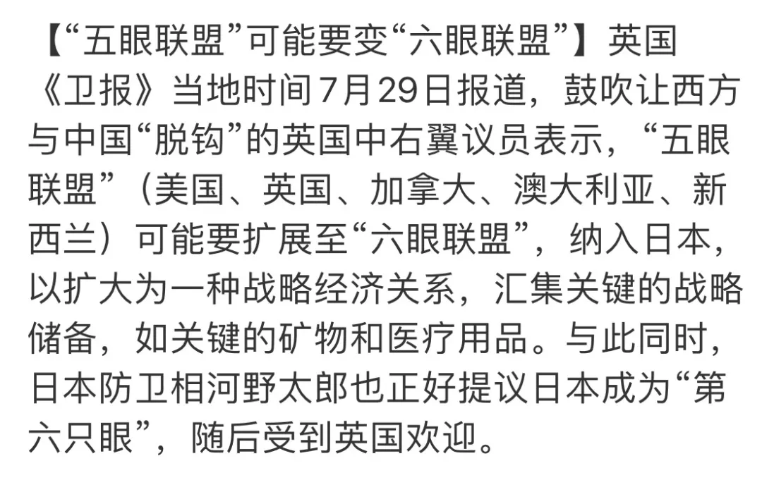 現在是五眼聯盟,未來是九眼聯盟,圍堵巨龍,趨勢已成。