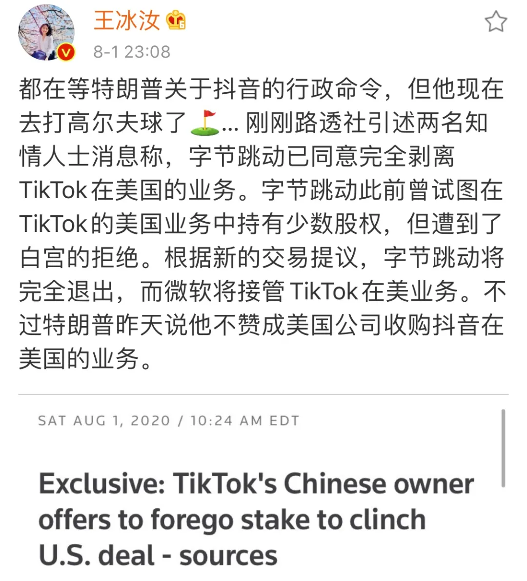 小札如果能接盤,白宮開通行證,對張一鳴,對投資人,對用戶,對臉書,是四贏,也算是無妄之災中的次優結局。