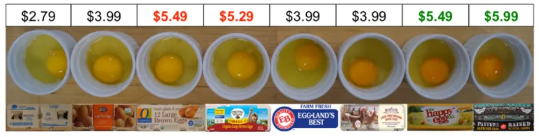 這種雞蛋的母雞,意味著雞每天必須至少有六個小時到戶外,並且每隻雞有2平方英尺的空間,比一般雞籠大一倍。
