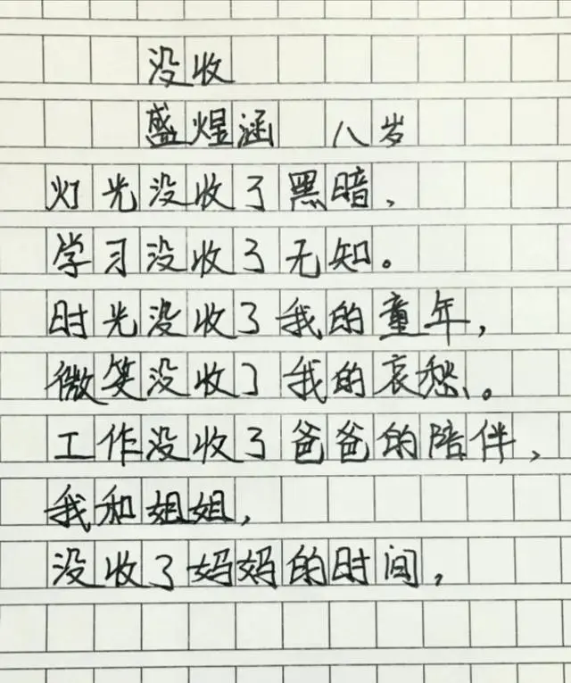 都說「年少不識愁滋味」,但是這位小朋友小小年紀卻被「沒收了哀愁」,讓無數家長自愧不如。孩子的成長只有一次,錯過了就再也無法彌補。一個家庭最好的教育,並不是父母有多大的成就,也不是掙多少錢,而是父親的陪伴,和母親的關愛。 02 作文《自我檢討》