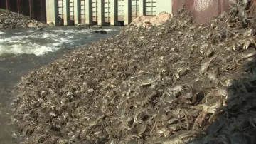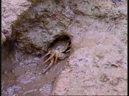 河岸邊泛濫成災的大閘蟹