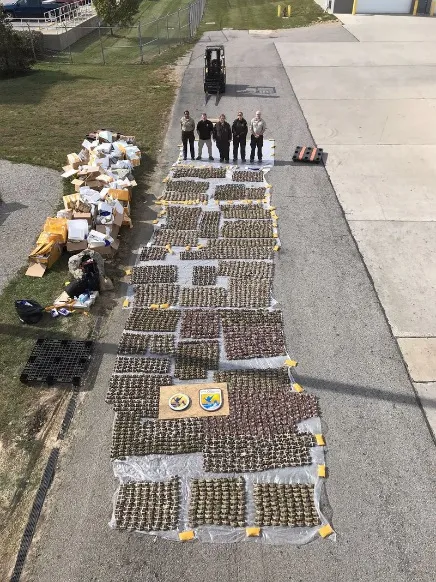 而在去年,辛辛那提港口海關再破大閘蟹大案,工作人員從51個標註為T恤、牛仔褲、工具和汽車零件的快遞箱中,翻出了無數捆紮整齊的大閘蟹,總重高達3400磅(超過1.5噸)。