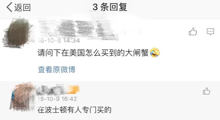 很多留言底下,也有答覆稱,「波士頓有人專門在賣」、「坐標洛杉磯,可以購買私人的活的大閘蟹,不過要提前預約」……