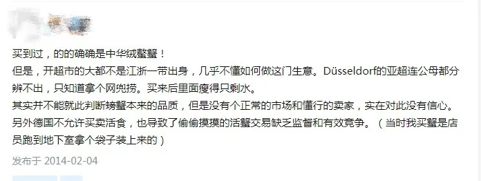 一些專門在美國做大閘蟹生意的商家稱,美國法律嚴格,鮮活大閘蟹無法入境,但他們生產的熟大閘蟹可以是通過跨境貿易公司進入美國,一般代購網站上都可以買到。
