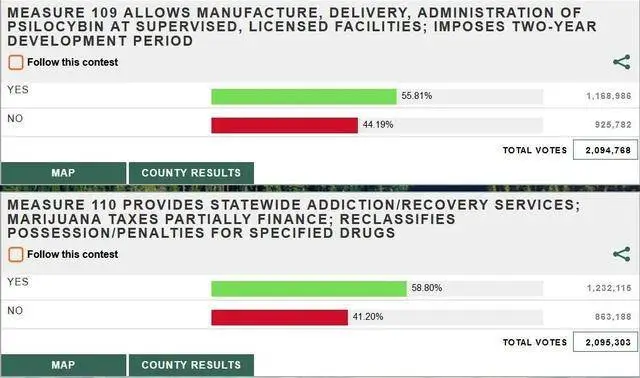 當地時間11月3日,美國俄勒岡州通過兩個法案——「109法案」和「110法案」。