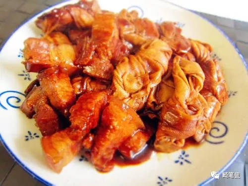 現在,大家也許覺得,紅燒肉不是很有樣子的嘛,加蛋也好看,加百葉結也好看啊。真是「污搞百葉結」了。