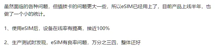 可以說, eSIM 技術在國內逐漸開始落地,對智能製造產業的創業者已經起到了一定的幫助。
