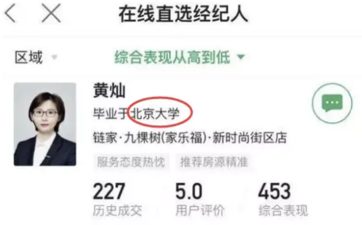 北大畢業去當房產經紀人的黃燦,掛上熱搜時,不少人嗤笑她考那麼高文憑有毛用,還不是個賣房子的中介。