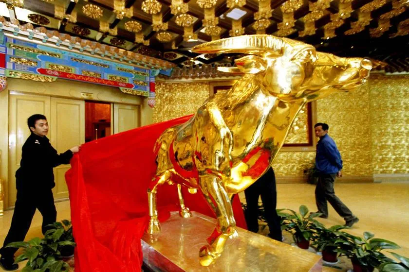 圖:華西牛300多米高的五星級酒店裡還放了個一噸的金牛,比華爾街都壕。 那麼,華西村是怎麼發家的?一般人看來,華西村自帶主角光環,它的成功是自力更生、自強不息的結果。但探窺其幽微之處,就會重新發現另一個真實的華西村。華西村第一桶金來自於利用價格雙軌制倒賣金屬。而在風光無二之時,這個村做的正是鋼材和煙草生意。而在那時,這兩項都是壟斷的暴利行業,別人是想都不敢想的事,很明顯有人在挑他們發財。在2010年前,華西村香煙在江陰還是主流,這也賺了不少錢的。利用政策發家致富后,華西村就開始裝點起自己的門面,吳仁寶通過上層的人脈,開始把華西村打造成了改開樣板。90年代有個領導人來了,更是盛極一時,直接叫「中國華西」了,弄成「天下第一村」牛逼閃閃的樣子,最終粉飾成「中國農村改革」的標桿,這就具有政治宣誓意義,於是,國家為其背書,大吹法螺,成為一面鮮明的旗幟。一時間,華西村取代了大寨和小崗村,成為新的「模範生」。