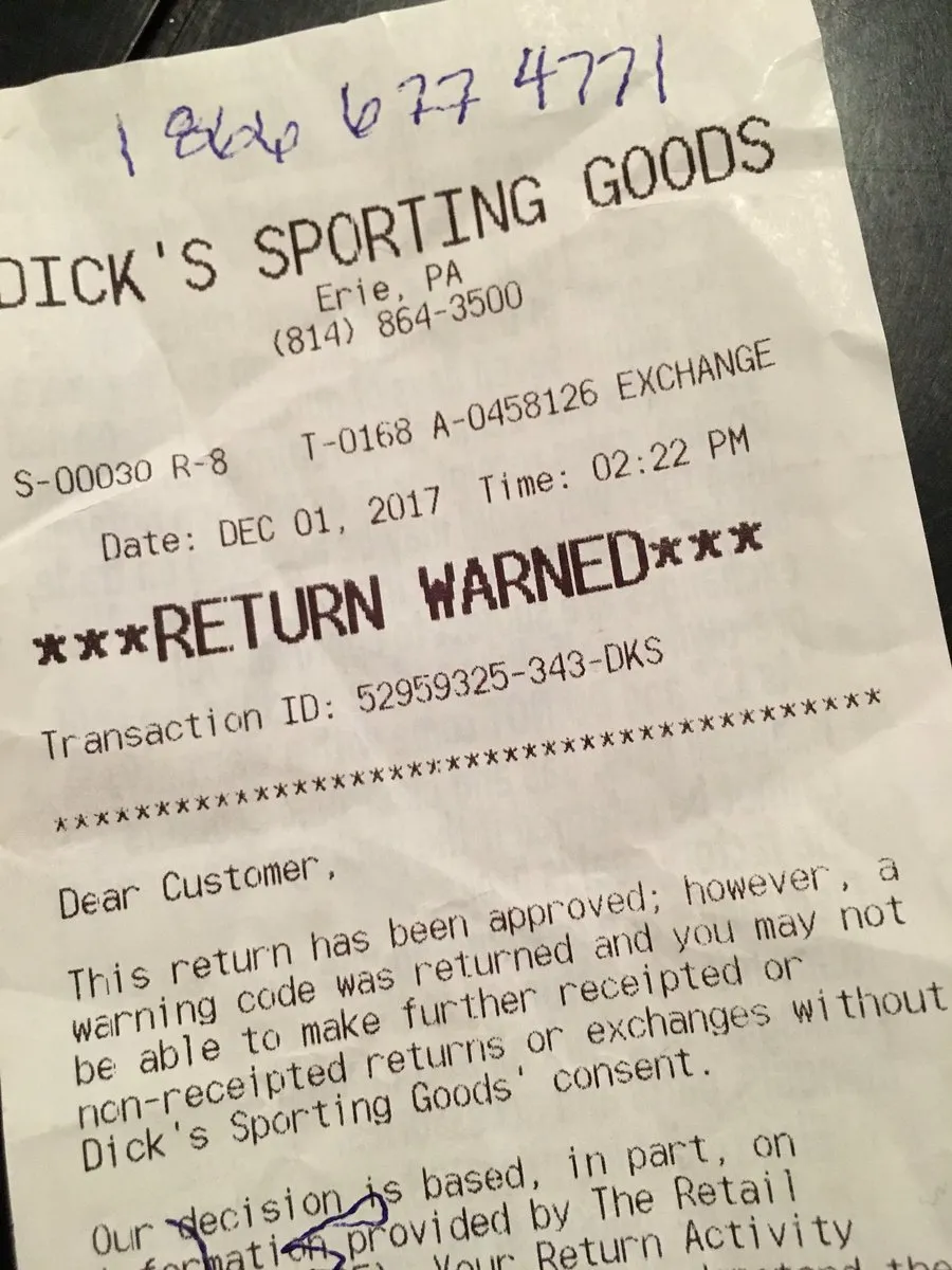 根據出示的小票,上面明確表示給予TRE 打出的分數,該名顧客已經被店家列為『黑名單』,將在一年內無法享受退貨服務。