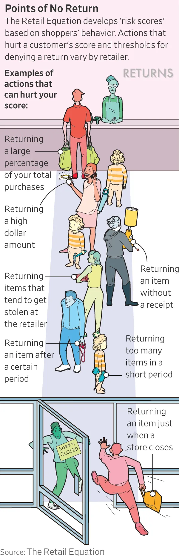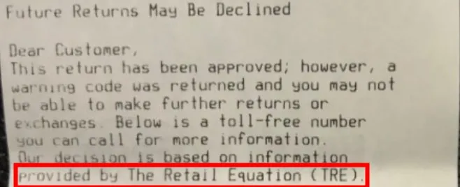 如果一旦監測到顧客違反了商店退貨政策,或者過度使用這些政策時就會發出警告。甚至會拒絕消費者的退貨申請