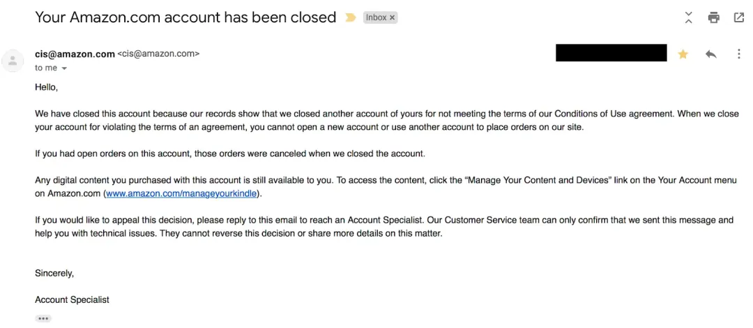 他使用不同的電子郵件地址或信用卡開設新賬戶。但都被亞馬遜發現,通通關掉了,最後他不得不轉戰eBay和其他網站。