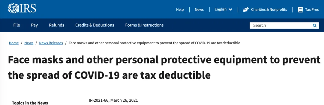 02IRS最新聲明:疫情期間防疫用品可抵稅