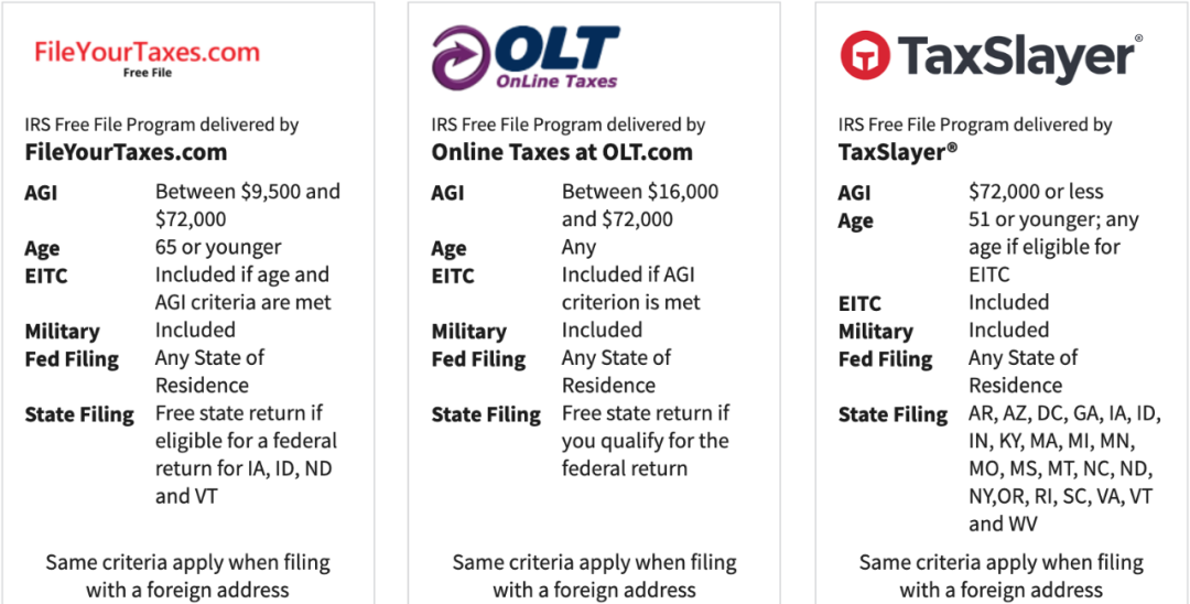 年AGI收入$ 72,000及以下的小夥伴與企業可以選擇IRS與多家報稅公司組成的聯盟Free File Alliance。