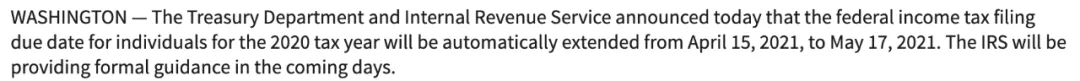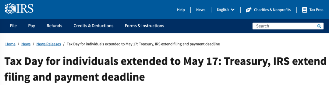 另外,以上延期只針對聯邦稅,各州的稅收時間還要以每個州的規定為準。