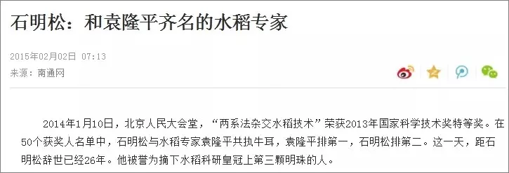 前面大家也應該看到了,中國雜交水稻成就公認有三個,一個就是開始提到的黃耀祥的矮化,這是他自己搞出來的,一個就是袁隆平的三系,這不是他一個人搞出來的,第三個就是更為先進的二系,這是石明松自己搞出來的。