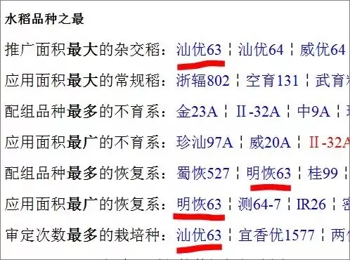 很遺憾的告訴大家,我們目前吃的大米沒有幾個是袁老爺子的產品.這是真的……這點恐怕大家都沒想到吧……我們以為現在吃的大米品種起碼一半是袁老爺子的事實上並不是……袁老爺子有數據可查的品種只有這幾個