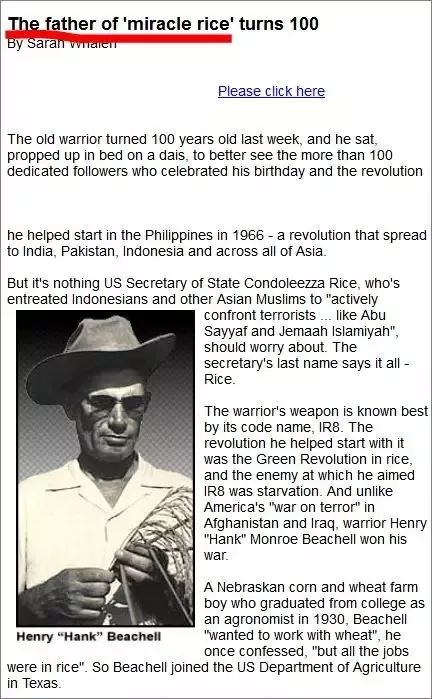 這個有多牛?要知道,世界上公認的水稻之父是一個美國人名字叫做Henry M. Beachell(1906-2006)。