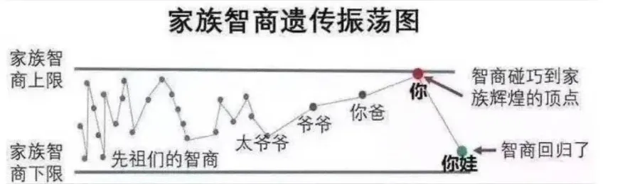 就算你們家命好,四代學霸,也早晚會出現均值回歸現象,出一個學渣來平衡一下。