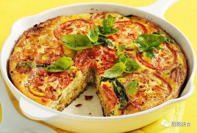 意式烘蛋是以新鮮的雞蛋為主,加入芝士、火腿、蔬菜等配料,裝在平底鍋中,加入烤爐中烘烤。在雞蛋剛好凝固成型但還帶著點軟滑的時候,香氣誘人的Frittata便可以新鮮出爐。意式烘蛋沒有固定菜譜,可以把任何你喜愛的蔬菜和肉類與蛋液相搭配。