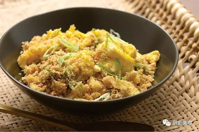 據說這是巴西黑豆燉肉、巴西烤肉的必備配菜,把雞蛋用巴西木薯粉、洋蔥丁、培根丁和奶油一起炒即可。