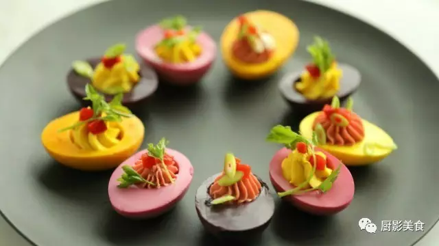 作為最常見的餐前小食,以及復活節的保留項目,人們對於魔鬼蛋的外形要求甚至超過了口味。起初,有些人會用甜菜汁浸泡蛋白,將其染成淡淡的紫紅色。盤點全球頂級食材,探索珍奇饕餮盛宴。更多精彩內容請關注微信公眾號:廚影美食。後來,當食用色素出現后,人們開始熱衷於將魔鬼蛋染成紅、綠、藍等各種顏色,以營造出熱烈的節日氣氛。