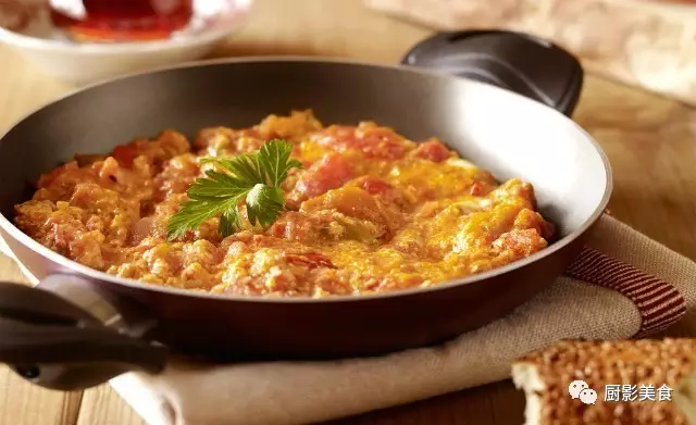 北非蛋,官方稱呼Shakshuka,是一道充盈著濃濃中東風情的菜品。在希伯來語中,Shashuka本身就是混合的意思。在燉到軟爛的番茄和洋蔥中敲入雞蛋,烤至雞蛋保持流黃的程度,製造出滑嫩細膩的口感,增加了一份酸爽。將這些美味抹在醇香的穀物麵包上送入口中,穀物的清香與蔬菜的味道搭配,有種田園般的氣息,絕對是治癒系早餐的最佳選擇。