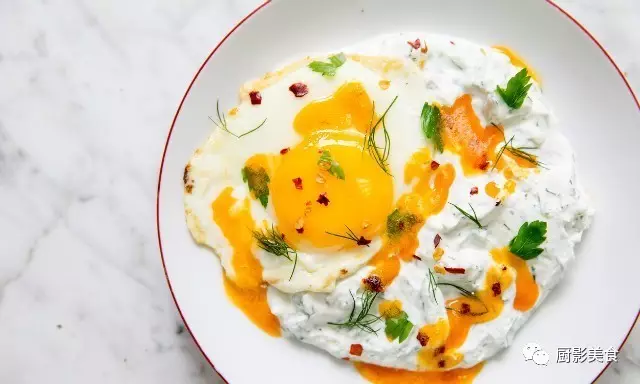 先在空碗里放入酸奶、大蒜、胡椒粉、鹽,攪拌成酸奶糊,然後將雞蛋煮三分鐘變成溏心蛋,將雞蛋放在酸奶糊上,戳開一個小口,蛋黃會流出來,吃的時候再根據個人口味加一些辣椒粉就好了。這道誕生15世紀奧斯曼帝國的美食,如今是土耳其最受歡迎的早餐。
